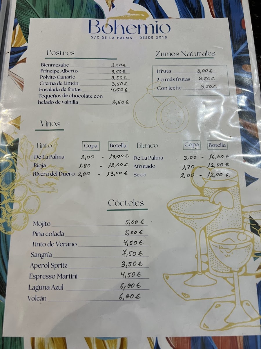 Cafe & Bar Bohemio Menu